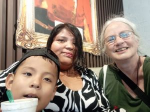 Joselin , en la actualidad con su hijo Lucas y acompañada de nuestra coordinadora en Bolivia, Viki Miller